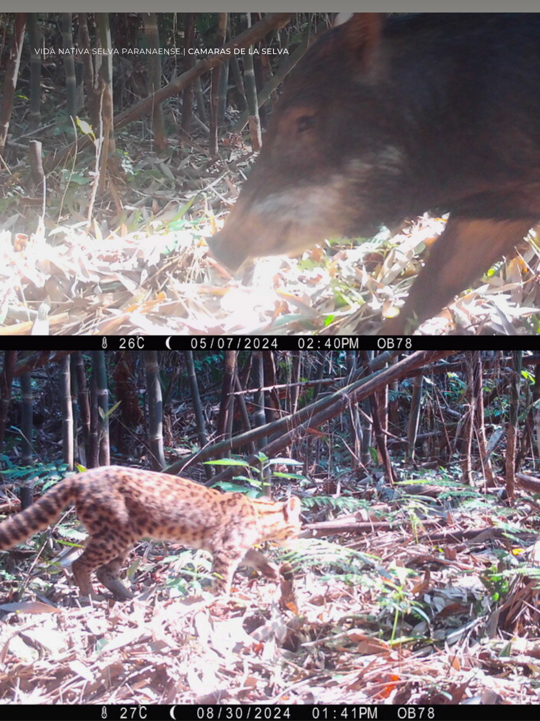 Durante 2024, instalamos estratégicamente 36 cámaras trampa en el bosque misionero. Estas herramientas nos permiten monitorear de manera no invasiva la biodiversidad y obtener información clave para su protección.